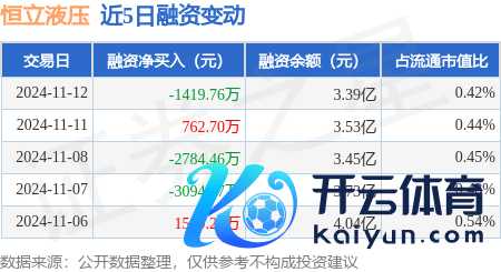本站音信,11月12日,恒立液压(601100)融资买入3665.85万元,融资偿还5085.6万元,融资净卖出1419.76万元,融资余额3.39亿元,近20个往改日中有11个往改日出现融资净买入。
