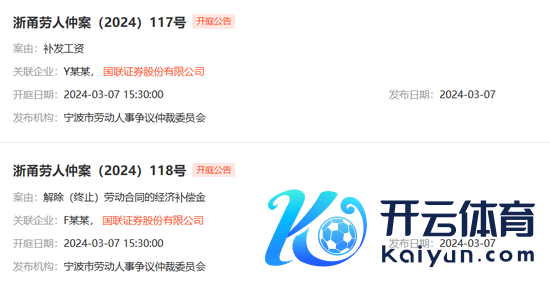 连同本案在内,启信宝本年以来仅收录了三起作事仲裁案开庭公告。前两起被告均为国联证券,由宁波市作事东说念主事争议仲裁委员会受理,辩认波及“补发工资”及“经济赔偿金”事项。