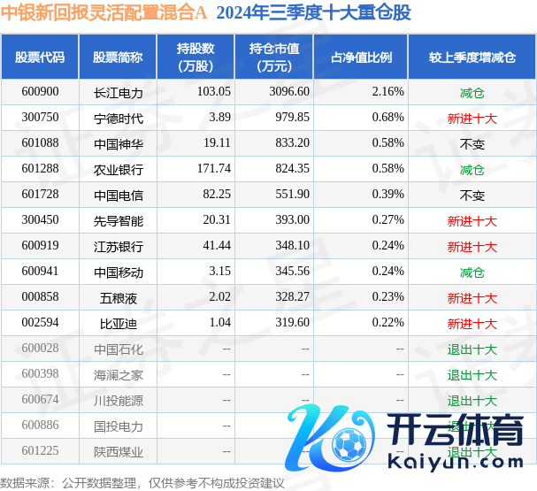 中银新陈述天真设立搀杂A为搀杂型-天真基金,笔据最新一期基金季报泄露,该基金金钱设立:股票占净值比9.53%,债券占净值比124.05%,现款占净值比4.24%。基金十大重仓股如下: